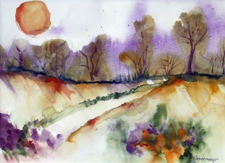 Landschaft lila Aquarell 20/28